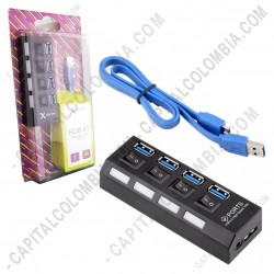 Hub USB 3.0 de marca X-kim Switch Tipo Multitoma Color Negro - XA4-HUB