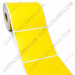 Rollo de etiquetas de transferencia color amarillo de 500 etiquetas a una columna. Tamaño de la etiqueta 10cms x 8.2cms, (100x82mm), Core Ø 1".IMPORTANTE: requiere de rollo de cera para imprimir.