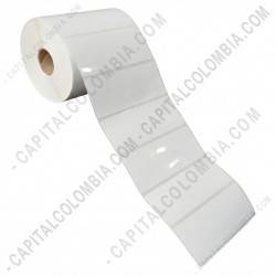Rollo de 1.000 etiquetas en Polipropileno Blanco a una columna, tamaño de la etiqueta 8cms x 4cm (80x40mm), Core Ø 1".IMPORTANTE: Necesita consumible rollo de resina para la impresión.