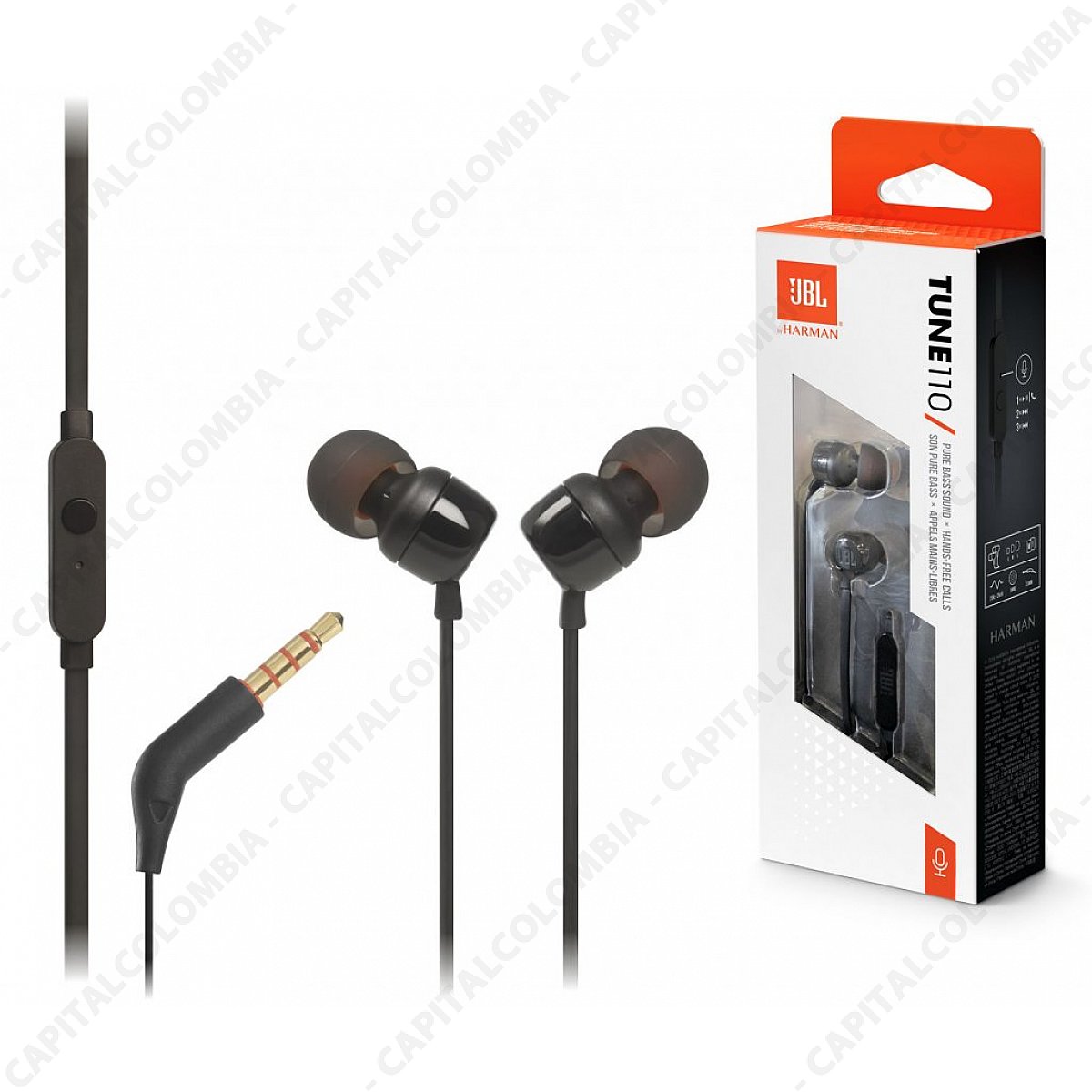 Auriculares Audifonos JBL T110 color Negro Pure Bass Manos Libres