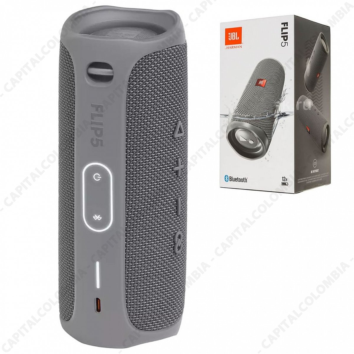 Parlante de marca JBL Flip 5 conexión Bluetooth Color Gris Resistente al Agua IPX7 - JBLFLIP5GRYAM